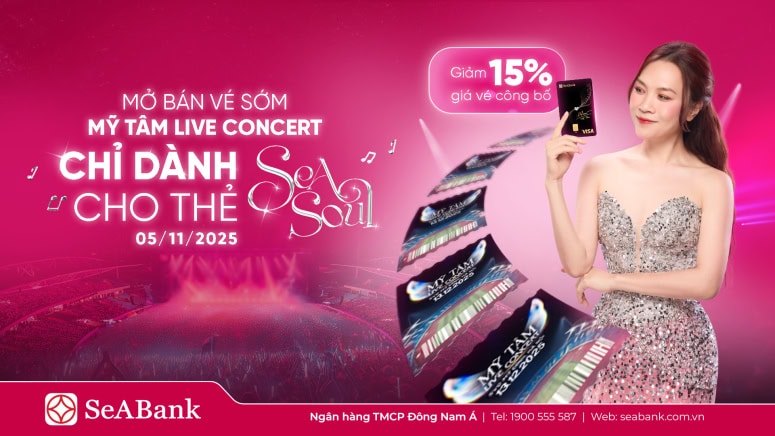 • Với quy mô 40.000 khán giả và sự đồng hành độc quyền từ SeABank, “See The Light – Tri Âm và ánh sáng”của Mỹ Tâm sẽ trở thành hành trình kết nối cảm xúc giữa âm nhạc, nghệ sĩ và khán giả. Đây là minh chứng sống động cho cam kết của SeABank trong việc đặt khách hàng ở trung tâm của mọi hoạt động, để mỗi khoảnh khắc thăng hoa trên sân khấu của nghệ sĩ cũng trở thành trải nghiệm đáng nhớ của khách hàng.
