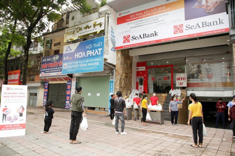 Chung tay cùng cộng đồng vượt qua đại dịch Covid-19, từ 8 – 10/4/2020 Ngân hàng TMCP Đông Nam Á (SeABank) đã trao tặng 2.500 món quà nhu yếu phẩm gồm 5 tấn gạo, 2.500 chai dầu ăn, 12.500 gói mì ăn liền cho người nghèo, người có hoàn cảnh khó khăn tại 9 điểm giao dịch SeABank ở thành phố Hà Nội.