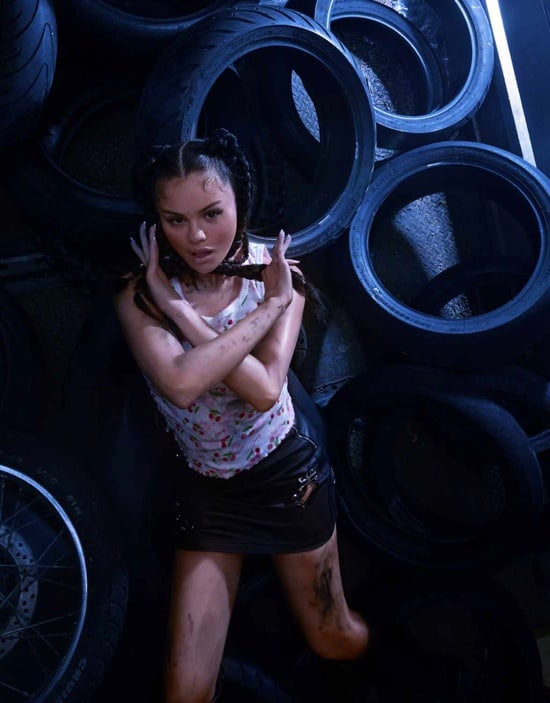 Selena Gomez được mời làm gương mặt trang bìa cho tạp chí Interview số mới. Cô xuất hiện khác lạ khi mặc đồ cắt xẻ, tóc tết lọn, cơ thể lấm lem bùn đất trong gara xe hơi.