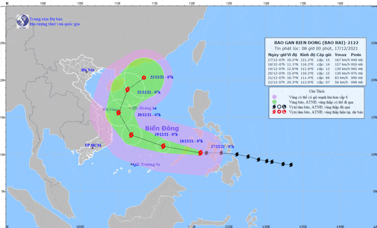 Siêu bão Rai giật trên cấp 17 khi vào Biển Đông