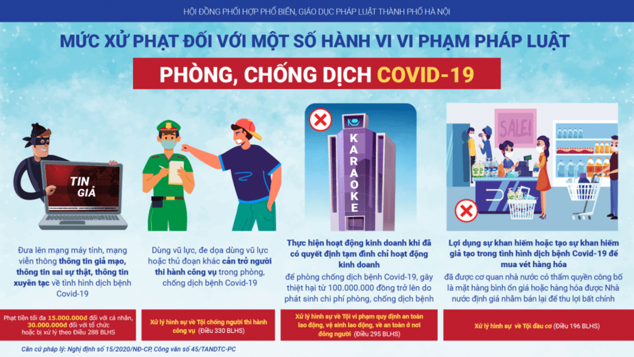 Sở Tư pháp Hà Nội vừa thông tin về mức xử phạt đối với 15 hành vi vi phạm quy định phòng, chống dịch Covid-19, trong đó mức phạt cao [...]