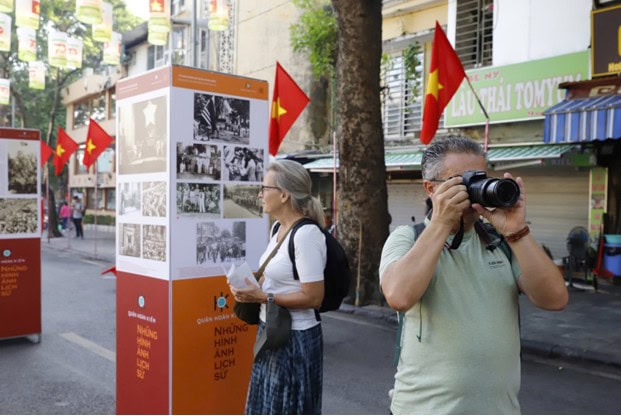 Triển lãm còn thu hút đông đảo du khách nước ngoài tới thăm quan. Một du khách tới từ Đức thích thú ghi lại khoảnh khắc tại chương trình.