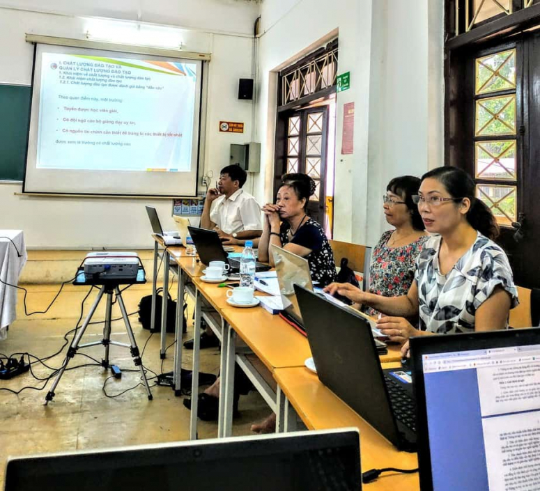 Các thầy cô lắng nghe chuyên gia phát biểu về những kỹ năng cần thiết trong kiểm định chất lượng GDNN
