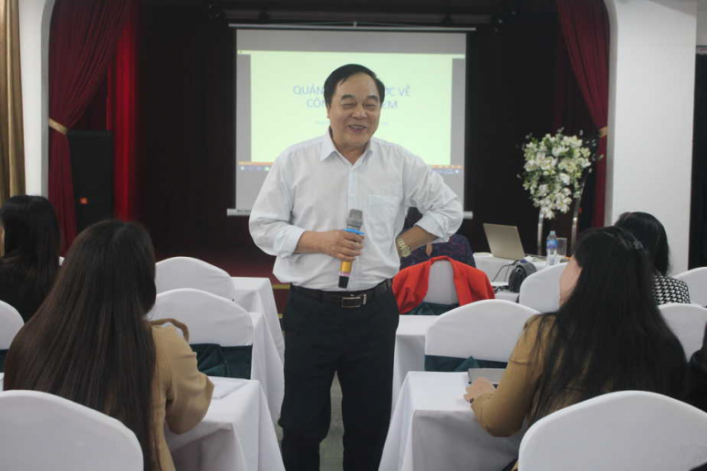 TS Nguyễn Hải Hữu, Phó Chủ tịch Hiệp hội GDNN và Nghề Công tác xã hội Việt Nam trao đổi tại lớp tập huấn