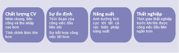 Hơn nữa, người tập nghề có khả năng tìm kiếm công việc nhanh hơn và dễ hơn so với phần lớn các sinh viên trong lĩnh vực giaó dục nghề nghiệp