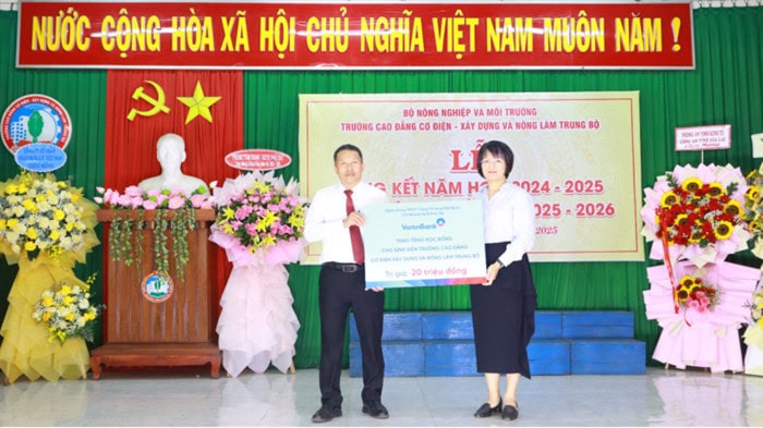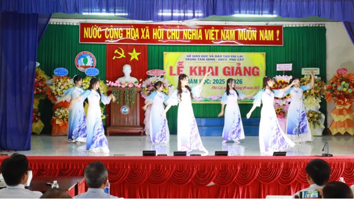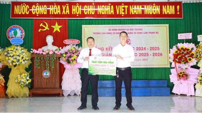 Trong khuôn khổ lễ khai giảng, Nhà trường đã trao giấy khen cho những giảng viên, học sinh, sinh viên tiêu biểu, ghi nhận sự cố gắng, rèn luyện và phấn đấu trong năm học vừa qua. Đây là phần thưởng xứng đáng, khích lệ tinh thần học tập đầy ý nghĩa đối với thầy và trò nhà trường. Điểm nhấn của buổi lễ là hoạt động trao các suất học bổng khuyến học ý nghĩa từ Ngân hàng VietinBank chi nhánh Phú Tài và Công ty Cổ phần Chăn nuôi CP Việt Nam với tổng số tiền là ba mươi lăm triệu đồng. Những phần thưởng này không chỉ hỗ trợ thiết thực về vật chất, mà còn tiếp thêm động lực, niềm tin và ý chí vươn lên cho sinh viên, khẳng định sự quan tâm, đồng hành của chính quyền và doanh nghiệp đối với sự nghiệp giáo dục nghề nghiệp.