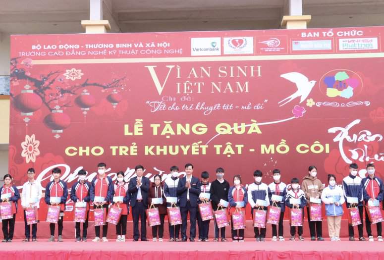 Tại buổi lễ, Hiệu trưởng Trường Cao đẳng nghề Kỹ thuật công nghệ Đặng An Bình khẳng định, thực hiện chủ trương của Đảng, chính sách của nhà nước và sự quan tâm của toàn xã hội đối với trẻ khuyết tật, mồ côi, đặc biệt là đối với các em học sinh có hoàn cảnh khó khăn, Trường Cao đẳng nghề Kỹ thuật công nghệ phối hợp với BTC chương trình “Vì An sinh Việt Nam” với chủ đề “Tết cho trẻ em khuyết tật – mồ côi” để tặng quà cho các em học sinh có hoàn cảnh đặc biệt khó khăn, chia sẻ với các em những khó khăn, thiệt thòi, động viên các em vượt qua khó khăn, vươn lên trong học tập và cuộc sống, hòa nhập chung với bạn bè, xã hội và được thể hiện ước mơ của mình, chăm chỉ học tập để trở thành những hạt giống ươm mầm xanh cho đất nước.