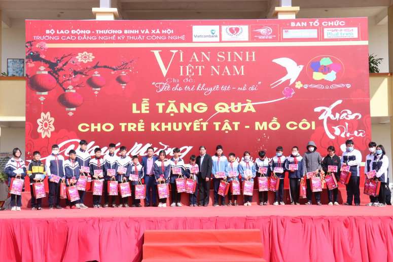 Nằm trong chuỗi các hoạt động từ thiện của Chương trình “Vì An sinh Việt Nam” với chủ đề “Tết cho trẻ khuyết tật – mồ côi”, ngày 06/01/2023, Trung ương Hội Bảo trợ người khuyết tật và trẻ mồ côi Việt Nam phối hợp với Trường Cao đẳng nghề Kỹ thuật Công nghệ và các đơn vị liên quan tổ chức buổi lễ trao quà cho các em khuyết tật và mồ côi.