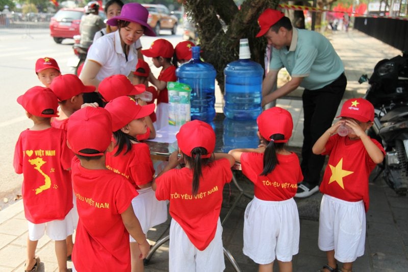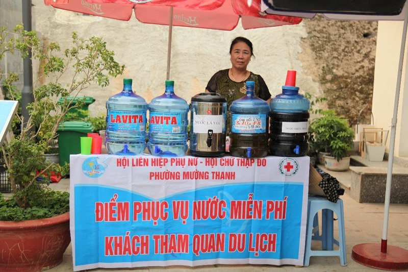 Trên nhiều tuyến phố trung tâm thành phố Điện Biên Phủ, trước trụ sở nhiều cơ quan, công sở, tổ chức xã hội của tỉnh Điện Biên đều dựng điểm cấp nước uống miễn phí phục vụ bà con nhân dân, du khách đến với Điện Biên.