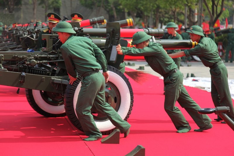Các chiến sĩ ưu tú của Lữ đoàn 45 đã phải trải qua quá trình luyện tập liên tục trong nhiều ngày dưới thời tiết nắng nóng khắc nghiệt tại tỉnh Điện Biên, đảm bảo đúng kế hoạch vào sáng 7/5/2024, 21 loạt đại bác được khai hỏa trên nền Quốc thiều của nước Cộng hòa xã hội chủ nghĩa Việt Nam, cũng chính là pháo hiệu để mở màn cho lễ diễu binh diễu hành của các lực lượng vũ trang trên đường phố Điện Biên Phủ.