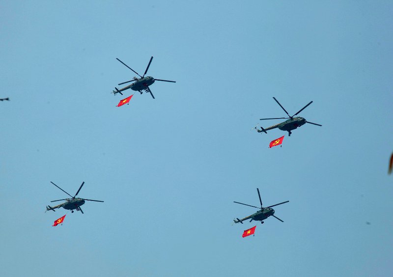 12 máy bay trực thăng của lực lượng không quân nhân dân Việt Nam sẽ mang cờ Đảng, cờ Tổ quốc bay qua khán đài trong ngày đại lễ.