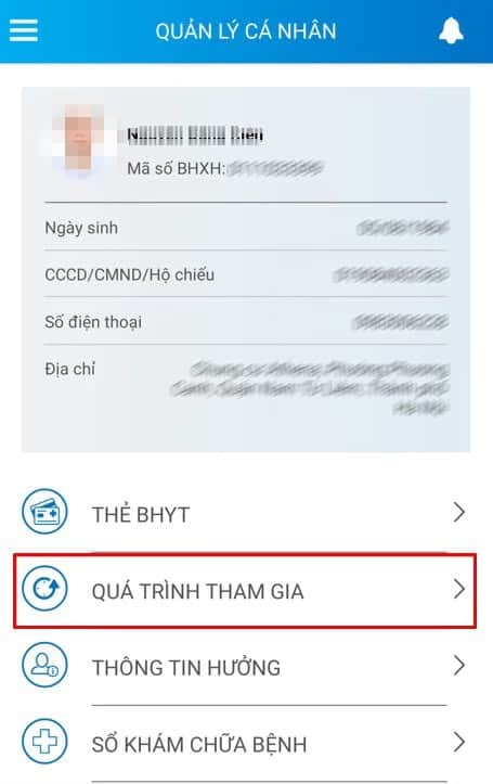 Bước 1. Sau khi đăng nhập ứng dụng, chọn chức năng “QUÁ TRÌNH THAM GIA”.