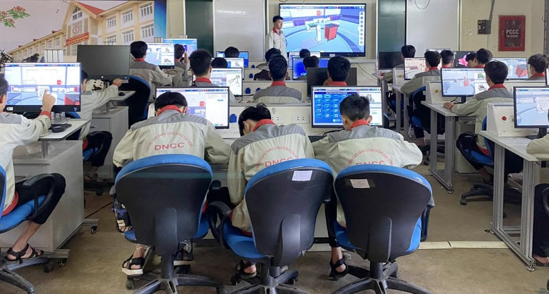 SV Trường Cao đẳng Cộng đồng Đắk Nông vừa học lý thuyết trên các phần mền thông minh, vừa trải nghiệm thực hành mô phỏng