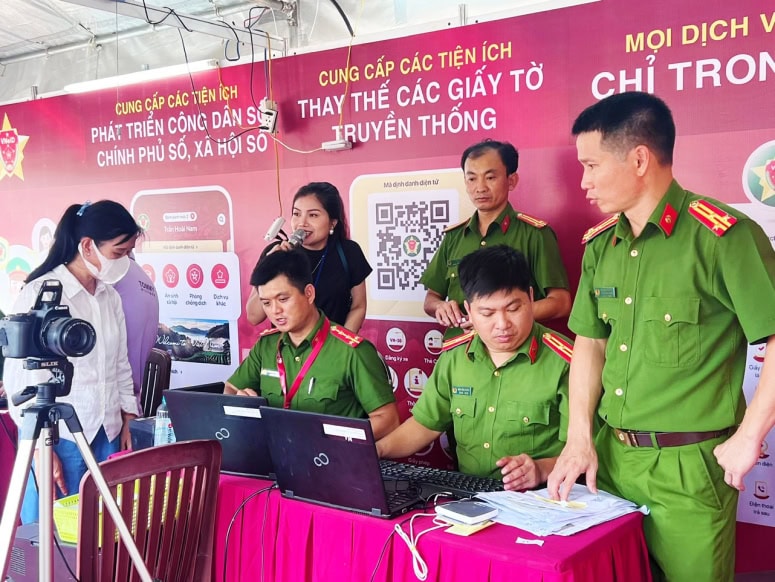 Công an tỉnh Quảng Nam cử đoàn công tác vào TP.HCM làm căn cước công dân cho bà con xa quê năm 2023 . Ảnh: C.H