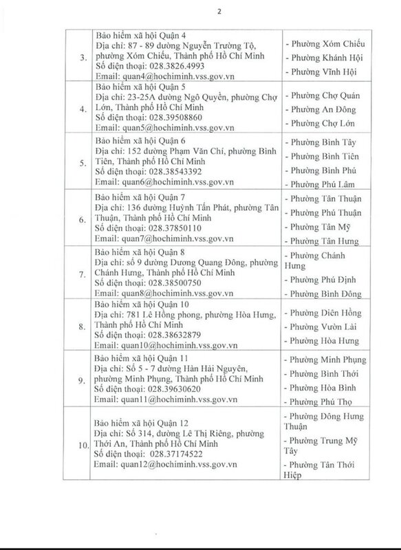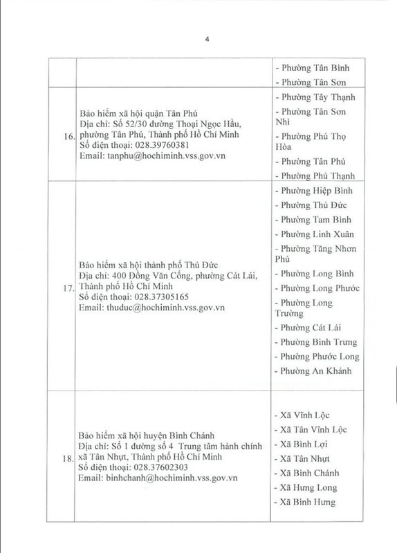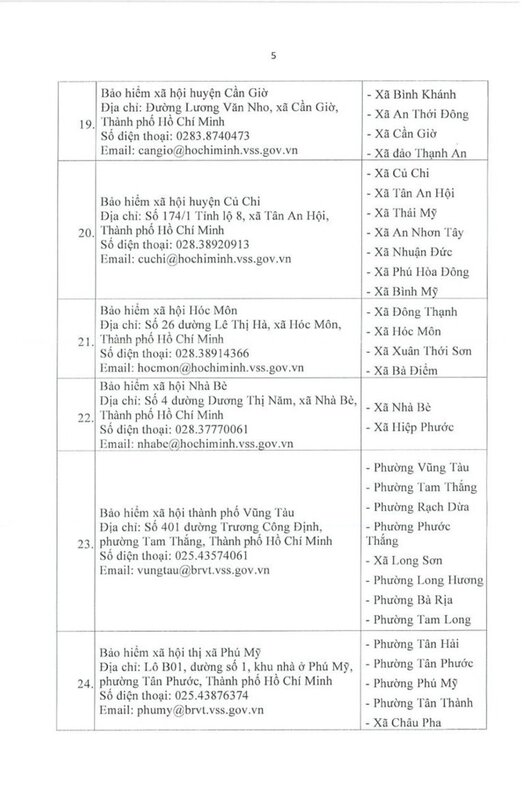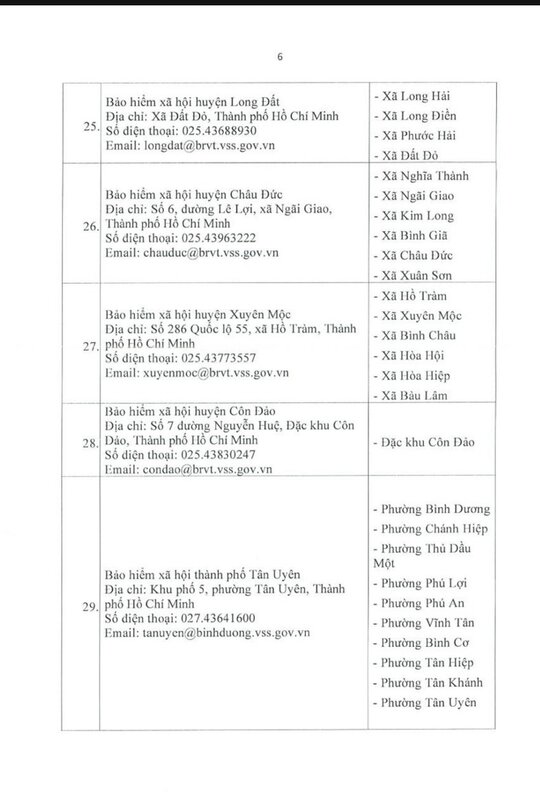 Đặc biệt, hệ thống BHXH tại các tỉnh lân cận thuộc cụm quản lý của khu vực như Bình Dương (Bến Cát, Tân Uyên, Thuận An) và Bà Rịa – Vũng Tàu (Phú Mỹ, Vũng Tàu) cũng đã được cập nhật đầy đủ phạm vi quản lý và thông tin liên hệ trong thông báo.