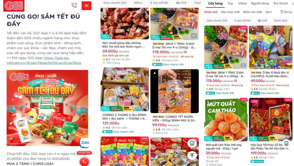 Trong khi đó, trên các sàn thương mại điện tử như Lazada, shopee, TikTok và hệ thống siêu thị, không khí mua sắm Tết lại sôi động. Nhiều nền tảng liên tục tung khuyến mãi, miễn phí vận chuyển, đổi trả linh hoạt, kết hợp livestream bán hàng, mini game kích cầu. Không ít mặt hàng bánh kẹo, đồ gia dụng, đồ trang trí Tết có giá cạnh tranh, thậm chí rẻ hơn chợ truyền thống, góp phần hút người tiêu dùng rời xa thói quen “đi chợ Tết” như trước.