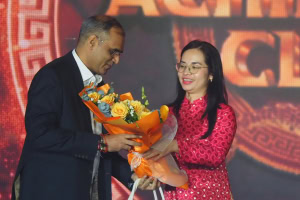 Đại diện Sở Du lịch TP. HCM tặng hoa cho Trưởng đoàn du khách MICE Ấn Độ.
