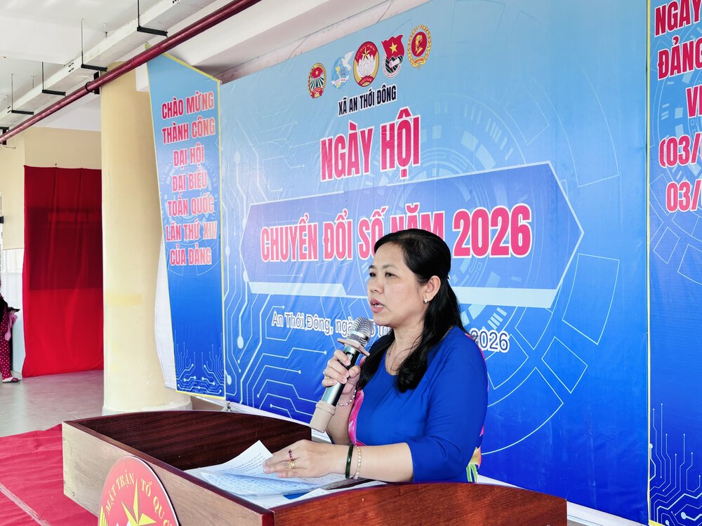 Phát biểu tại chương trình, bà Cổ Thị Ngọc Điệp – Bí thư Đảng ủy, Chủ tịch HĐND xã An Thới Đông nhấn mạnh: “Chuyển đổi số ở cấp xã phải bắt đầu từ người dân, để người dân biết, hiểu và làm được. Phong trào “Bình dân học vụ số” được triển khai với phương châm “đi từng ngõ, gõ từng nhà”, giao cho các Tổ Công nghệ số cộng đồng và lực lượng đoàn viên, thanh niên trực tiếp hướng dẫn, “cầm tay chỉ việc” cho người dân”.