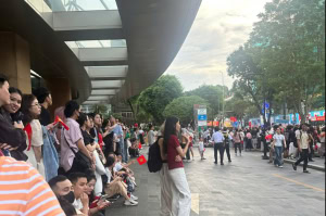 Trời chưa tối, người dân và du khách tại TP. HCM đã di chuyển tìm cho mình vị trí thuận lợi nhất để xem buổi hợp luyện diễu binh, diễu hành lần thứ hai. Ảnh: Hạ Lam