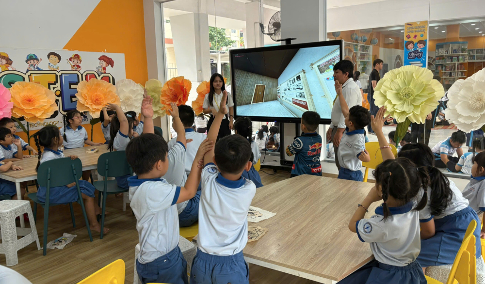 Không gian thư viện được thiết kế như một hệ sinh thái học tập mở, tích hợp hình ảnh, âm thanh, phim hoạt hình, đồ họa tương tác, cùng các ứng dụng thực tế ảo (VTPR), thực tế ảo tăng cường (AR). Qua đó, học sinh không chỉ tiếp thu kiến thức một cách sinh động, mà còn từng bước hình thành kỹ năng tự học, khả năng khám phá và làm quen với môi trường học tập số.