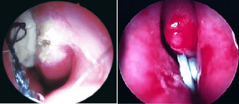 – Các khối u trong hốc mũi xuất hiện tình trạng thiếu máu dinh dưỡng bề mặt nên bắt đầu hoại tử và xấut hiện chảy máu: tuy nhiên máu thường không đỏ tươi mà lẫn với dịch mũi, có màu lờ lừo máu cá (máu nâu đỏ) và có mùi thối. Kèm theo khi khai thác bệnh nhân đã có hiện tượng ngạt tắc mũi một bên xuất hiện từ từ và tăng dần, đau và tê bì nửa bên mặt cùng bên chảy máu…(nếu là u ác tính), một số trường hợp u lảnh tính như u máu, u xơ mạch vòm mũi họng: máu chảy thường số lượng nhiều và máu đỏ tươi, người bệnh thường có tình trạng mất máu mạn (da xanh tái, môi nhợt nhạt, mạch nhanh…).