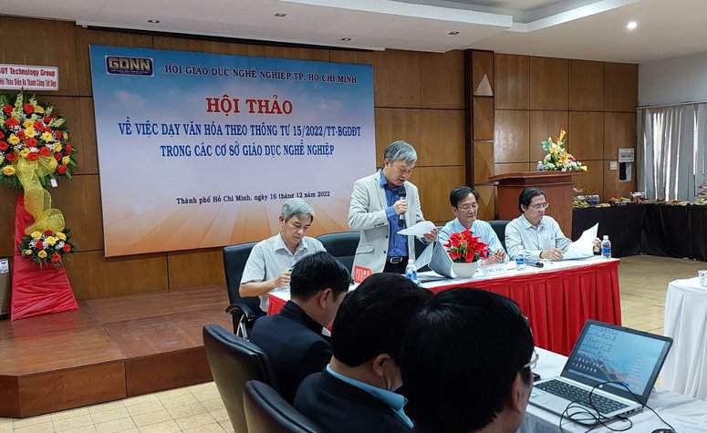 Phát biểu khai mạc Hội thảo Triển khai dạy văn hóa trong các cơ sở GDNN do Hội GDNN TP.HCM tổ chức ngày 16/12, ông Lâm Văn Quản – chủ tịch Hội cho biết: “Bộ Giáo dục và Đào tạo đã ban hành Thông tư số 15/2022/TT-BGDĐT ngày 8/11/2022 quy định việc giảng dạy khối lượng kiến thức văn hóa THPT trong cơ sở GDNN. Đây được xem là một tin vui đối với các trường nghề khi nút thắt về giảng dạy văn hóa và tuyển sinh đã được tháo gỡ.”