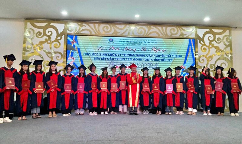 Vừa qua, tại tỉnh Bến Tre, Trường Trung cấp (TC) Nguyễn Tất Thành long trọng tổ chức Lễ tốt nghiệp và trao bằng cho 154 học sinh khóa 2021.