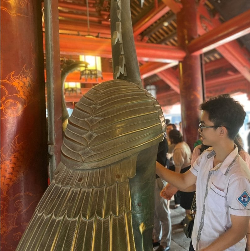 Sĩ tử hào hứng xoa mình hạc để cầu may mắn, đỗ đạt trong kì thi tới