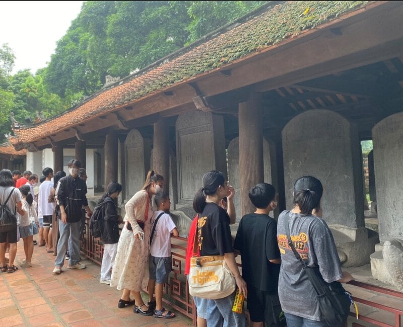 Sau khi dâng hương, các sĩ tử tranh thủ lưu giữ khoảnh khắc đẹp tại đây.