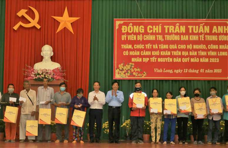 Nhận sự phân công của Bộ Chính trị, ngày 12/1, Ủy viên Bộ Chính trị, Trưởng Ban Kinh tế Trung ương Trần Tuấn Anh và đoàn công tác đã đến thăm, chúc Tết, tặng quà cho mẹ Việt Nam anh hùng; công nhân lao động có hoàn cảnh khó khăn… tại tỉnh Vĩnh Long.