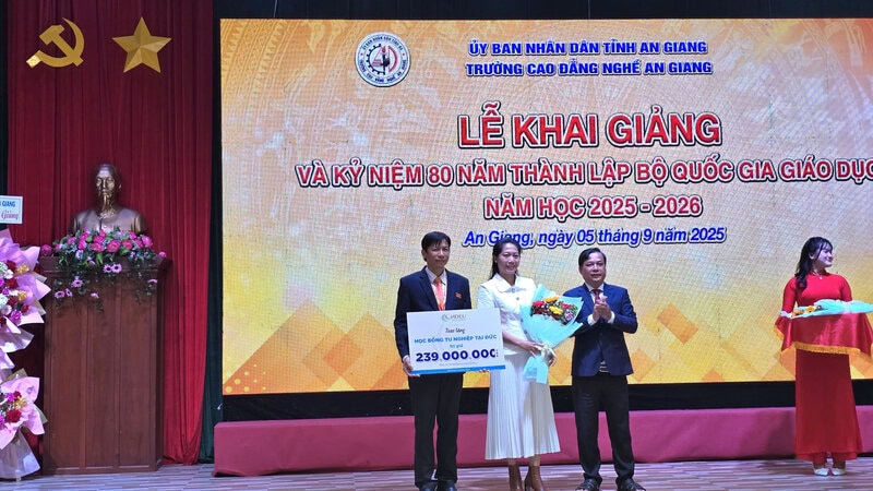 Sáng 5/9, Trường Cao đẳng nghề An Giang đã long trọng tổ chức Lễ Khai giảng năm học 2025-2026, chào đón gần 1.000 tân học sinh, sinh viên (HSSV) chính thức nhập học tại gần 40 ngành nghề khác nhau.