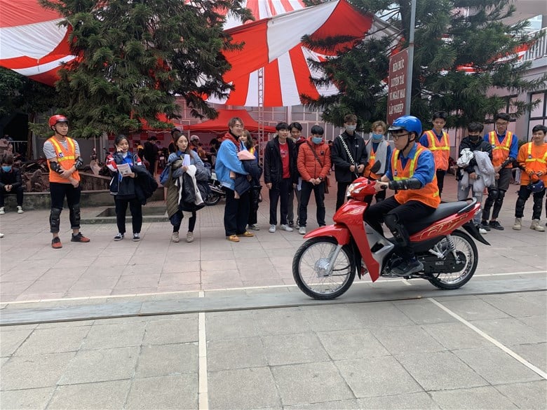 Ngoài ra, Công ty Honda Việt Nam đã tổ chức cho các bạn Sinh viên được thực hành các kỹ thuật lái xe cơ bản như: Kỹ thuật cua vòng, kỹ thuật phanh, các tư thế khi lái xe ở các loại địa hình và kỹ năng thăng bằng trên ván hẹp…