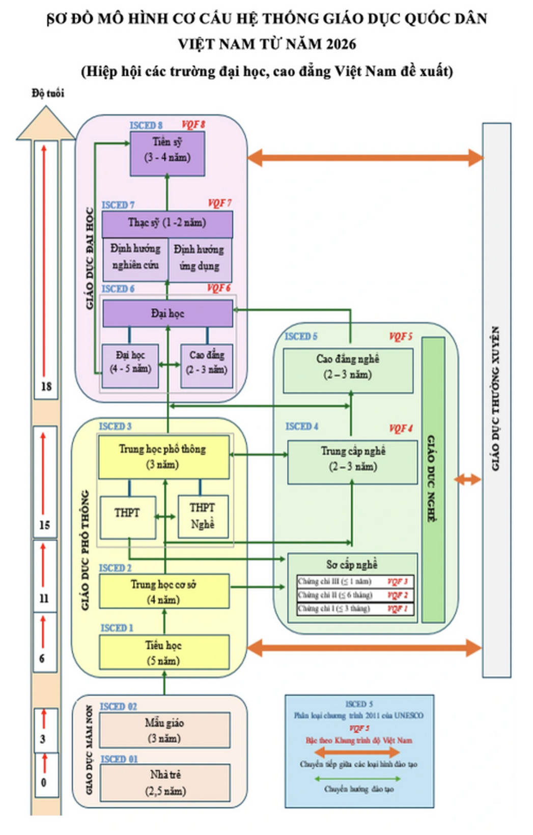 Tuy nhiên, Hiệp hội Các trường đại học, cao đẳng (ĐH, CĐ) Việt Nam không đồng tình và cho rằng, quan niệm “giáo dục nghề nghiệp là một bậc của hệ thống giáo dục quốc dân” chưa hợp lý. Lý do là nhiều quốc gia trên thế giới không coi giáo dục nghề nghiệp là một bậc học mà là một hướng đào tạo song song.