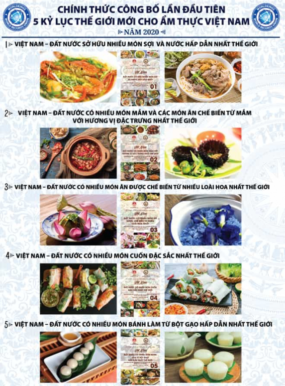 5 đề cử kỷ lục thế giới trong lĩnh vực ẩm thực – đặc sản cho Việt Nam lần này đều được công nhận gồm: