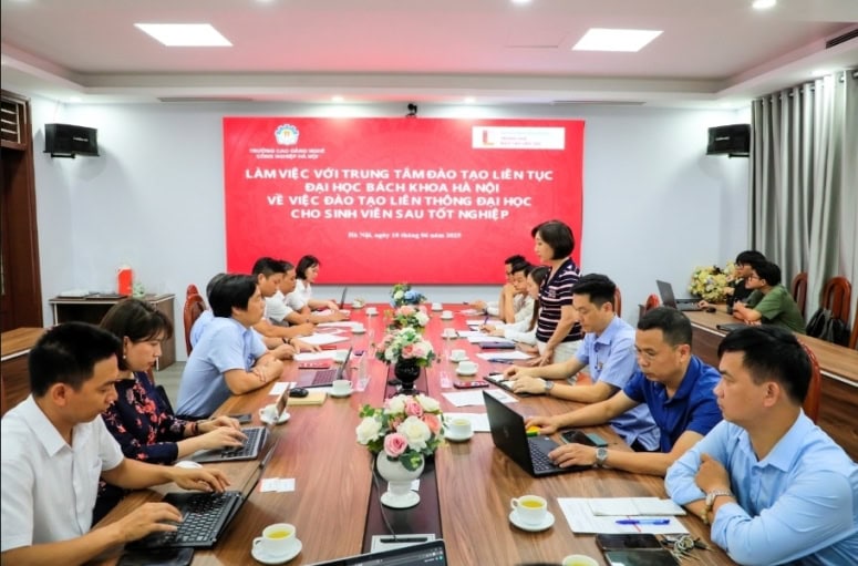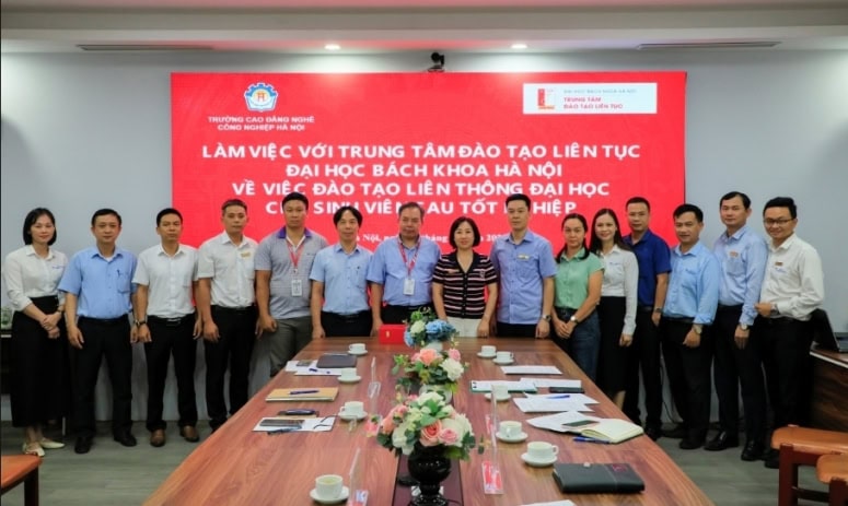 Ngày 18/6/2025, trong buổi làm việc giữa Lãnh đạo Trung tâm Đào tạo liên tục – Đại học Bách Khoa Hà Nội và Ban lãnh đạo trường Cao đẳng nghề Công nghiệp Hà Nội, hai bên đã thống nhất triển khai chương trình hợp tác đào tạo liên thông đại học dành cho sinh viên hệ cao đẳng chính quy HNIVC đã tốt nghiệp hoặc đang đi làm tại các doanh nghiệp. Đây không chỉ là một chương trình học, mà là một lộ trình phát triển toàn diện dành cho những bạn trẻ có hoài bão vươn xa hơn trong học vấn và sự nghiệp.