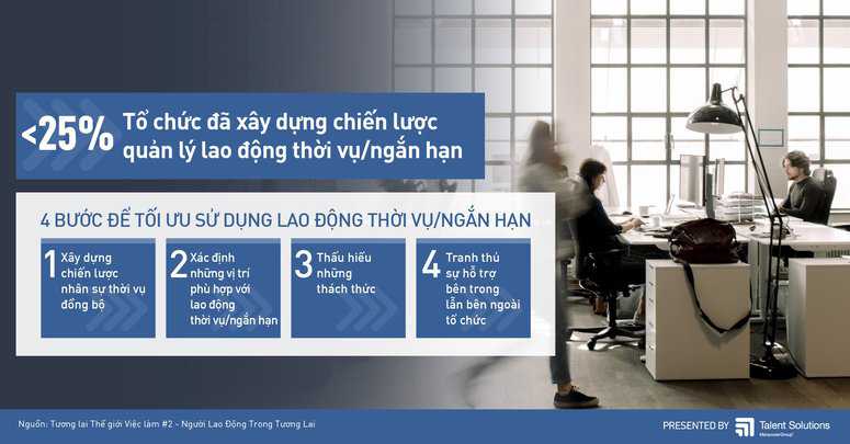 Khảo sát cho thấy, trong bối cảnh thiếu hụt nhân tài sâu sắc, các mô hình kinh doanh liên tục thay đổi cùng nhiều yếu tố bất ổn về kinh tế đang diễn ra, lao động thời vụ/ngắn hạn đang đóng vai trò ngày càng quan trọng.