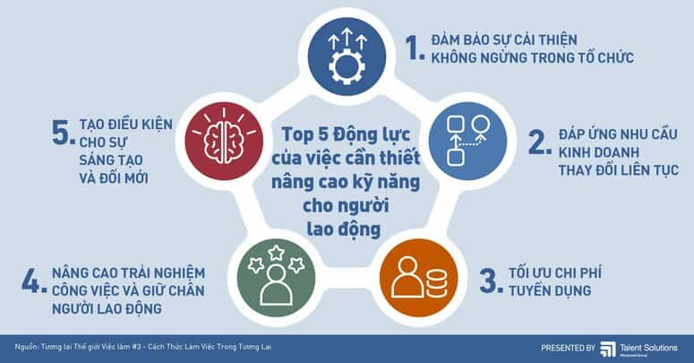 Theo Manpower Group, đối mặt với vấn đề thiếu hụt nhân tài trên toàn cầu cùng yêu cầu ngày cang cao về chất lượng nhân sự tuyển dụng. bản thân mỗi tổ chức, doanh nghiệp cũng cần nhận thấy sự cần thiết và tự tao ra động lực trong việc nâng cao kỹ năng cho người lao động. Theo đó, khi làm được điều này sẽ có nhiều ích lợi lớn, có thể kể đến như: Đảm bảo cho sự cải thiện không ngừng trong tổ chức; Đáp ứng được nhu cầu khi môi trường kinh doanh thay đổi liên tục; Tối ưu được chi phí tuyển dụng…
