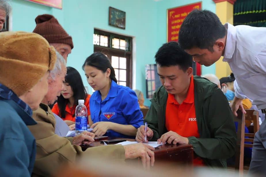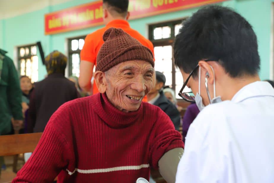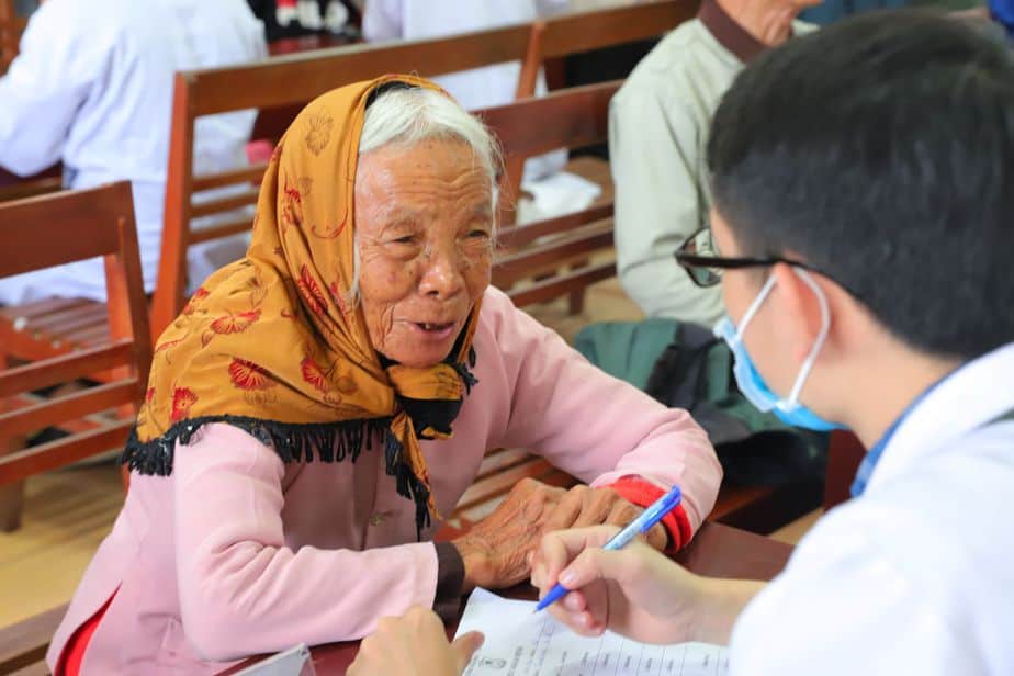 Công tác khám bệnh cho các cụ được tiến hành cẩn thận, kỹ lưỡng từ đo huyết áp, khám mắt, khám nội, làm điện tâm đồ… nhằm phát hiện sớm một số bệnh mà người cao tuổi thường mắc phải để tư vấn kịp thời phương pháp phòng và chữa bệnh. Trong một ngày làm việc với tinh thần, trách nhiệm cao của các thầy thuốc đến từ bệnh viện K3, Bệnh viện ĐH Y Hà Nội, Bệnh viện Mắt Sài Gòn và Ban Tổ chức đã thăm khám cho 300 người cao tuổi của xã và trao tận tay các cụ mỗi suất quà gồm các loại thuốc như: Hoạt huyết dưỡng não, Vitamin tổng hợp, cao tan, thuốc nhỏ mắt… và tiền mặt là 200.000 đồng/ suất.