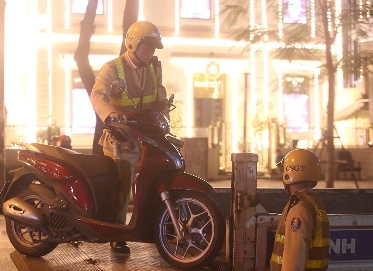 Tại phố Tràng Tiền, cảnh sát phát hiện một xe máy chở hai người, lái xe có dấu hiệu loạng choạng nên yêu cầu dừng xe kiểm tra. Kết quả kiểm tra nhanh bằng máy cho thấy chỉ số bằng không, cảnh sát cảm ơn tài xế và để phương tiện này đi tiếp.