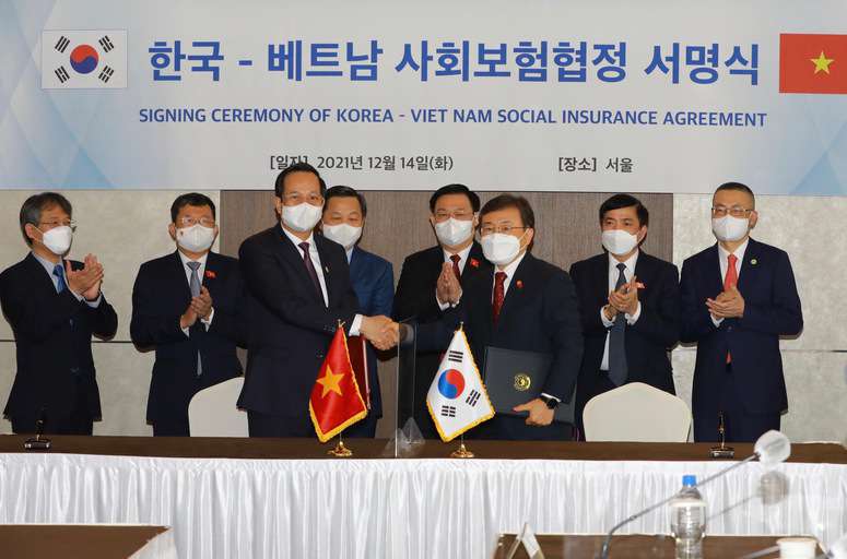 Sáng nay 14/12/202, tại thủ đô Seoul (Hàn Quốc) dưới sự chứng kiến của Chủ tịch Quốc hội Vương Đình Huệ, Phó Thủ tướng Lê Minh Khái và lãnh đạo một số cơ quan của Quốc hội, Bộ trưởng Bộ LĐ-TB&XH Việt Nam Đào Ngọc Dung và Bộ trưởng Bộ Y tế và Phúc lợi Xã hội Hàn Quốc Kwon Deok Cheol đã ký Hiệp định song phương về Bảo hiểm xã hội giữa Việt Nam và Hàn Quốc. Đây là Hiệp định đầu tiên của Việt Nam và Hàn Quốc trong lĩnh vực này.
