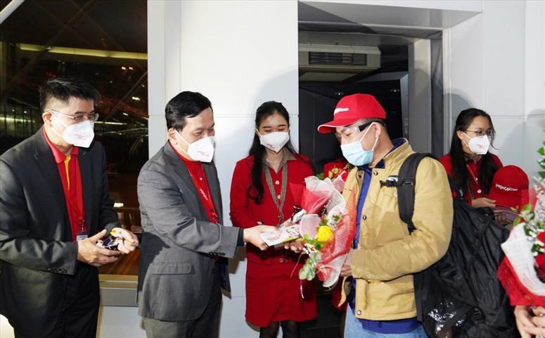 Trước đó, chuyến bay quốc tế đầu tiên của Vietjet từ Tokyo, Nhật Bản trong năm 2022 cũng đã hạ cánh tại sân bay Nội Bài (Hà Nội) trong không khí hân hoan chào đón của các lãnh đạo hàng không Việt Nam, khởi đầu cho một năm mới 2022 hứa hẹn những điều tốt đẹp. Phó Cục trưởng Cục Hàng không Đinh Việt Sơn, lãnh đạo Cảng Hàng không Quốc tế Nội Bài, hãng hàng không Vietjet đã có mặt tại sân bay từ rất sớm, chào đón, tặng hoa, lì xì và chúc mừng năm mới cho những hành khách trên chuyến bay quốc tế đầu tiên của hãng trong năm 2022.