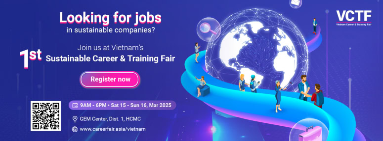 Vietnam Career & Training Fair (VCTF) sẽ chính thức diễn ra vào tháng 3 năm 2025, đánh dấu sự kiện tuyển dụng và đào tạo quy mô lớn đầu tiên dành riêng cho người đi làm tại Việt Nam. Sự kiện hứa hẹn mang đến hàng ngàn cơ hội việc làm và chương trình phát triển nghề nghiệp, góp phần vào mục tiêu phát triển sự nghiệp bền vững.