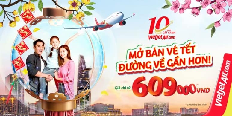 Vui xuân đón Tết cùng Vietjet với trăm ngàn vé ưu đãi chỉ từ 609.000 đồng